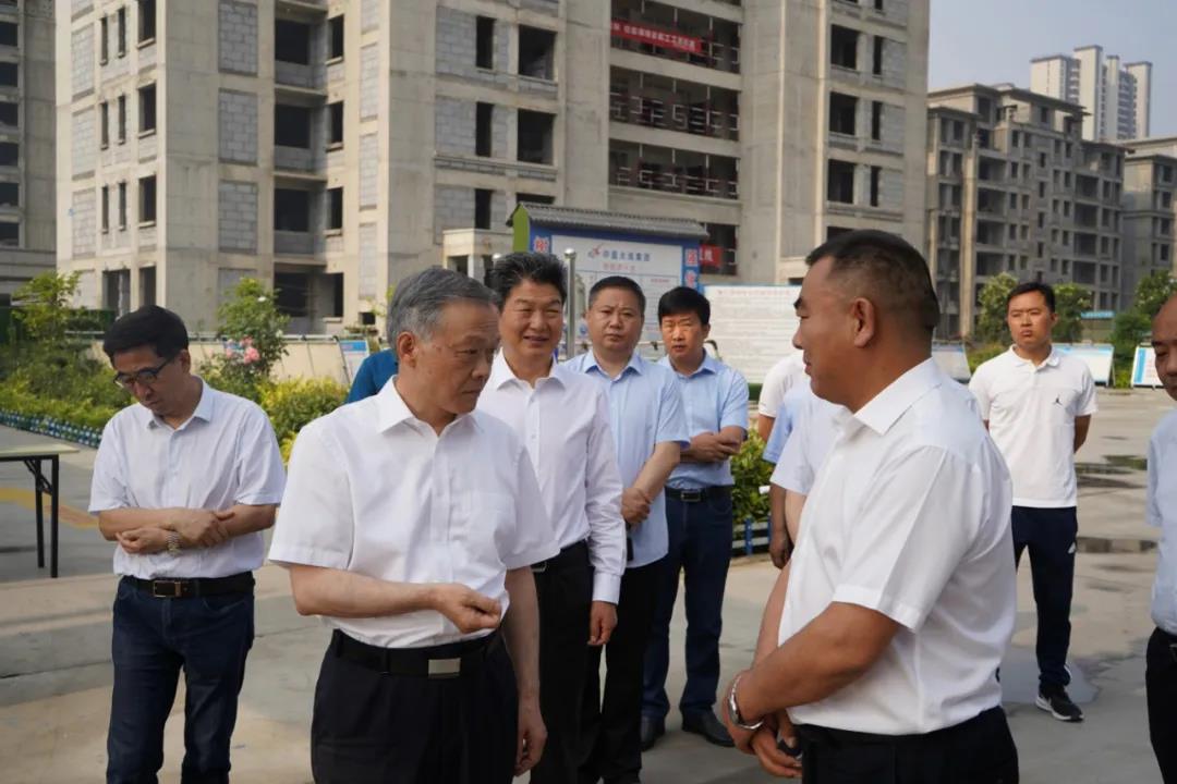 6月10日上午,许昌市市委书记胡五岳、常务副市长赵文峰一行莅临集团公司承揽施工的恒达和园项目现场,对安全生产工作进行调研指导。集团公司董事长、总经理高峰及东城区、市住建局有关领导同志接待调研并汇报相关工作。