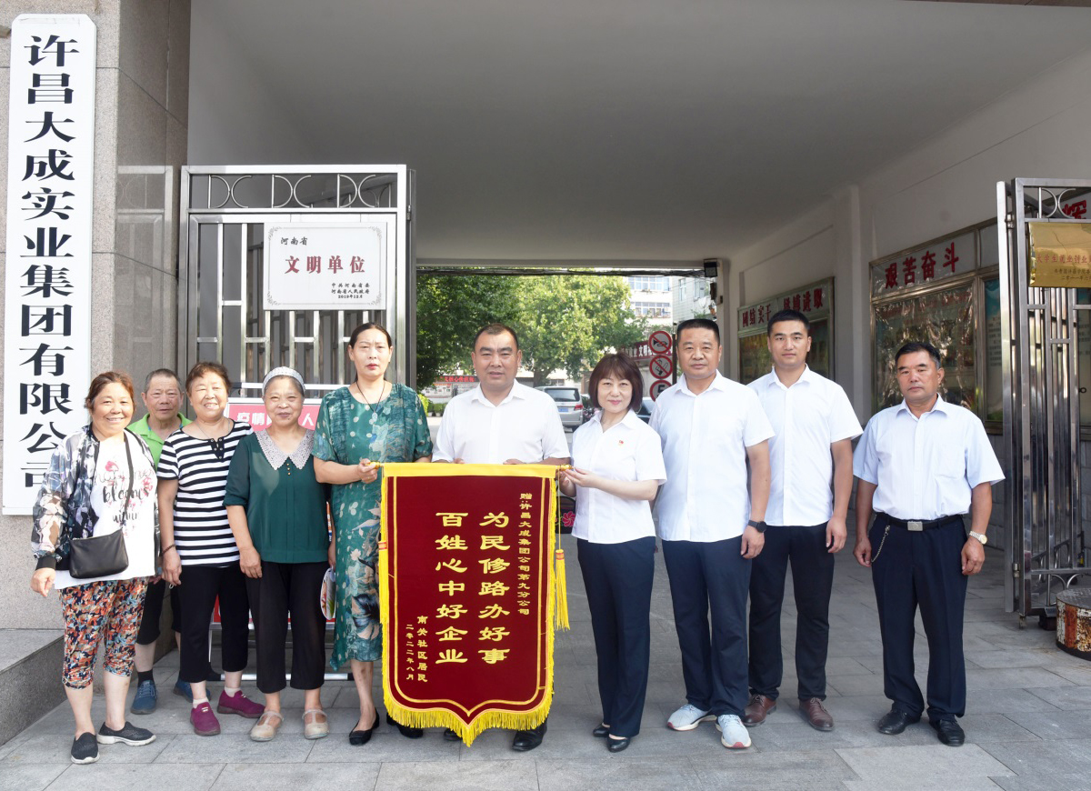 日前,南关社区张露霞与李喜玲等居民一行来到集团公司,满怀激动把写有“为民修路办好事、百姓心中好企业”的一面锦旗送到集团公司董事长、总经理高峰手里,并感谢集团公司第九分公司保质保量地完成了老旧小区改造施工任务,使老旧小区面貌焕然一新,居民生活环境得到了极大的改善。