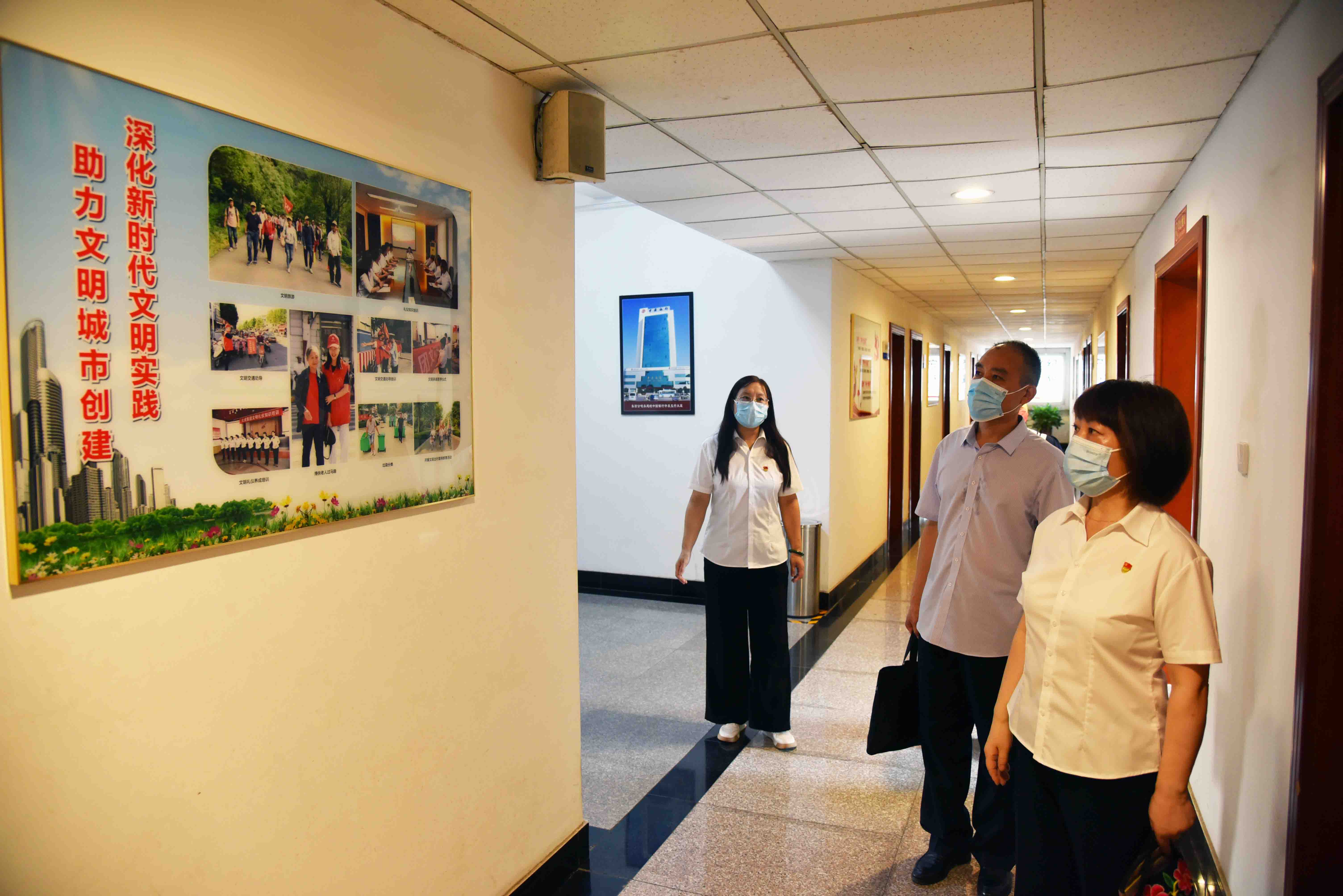 这次测评内容为实地考察,考核组一行按照《非公有制经济和社会组织河南省文明单位(标兵)测评体系》(2021年版)实地考察测评标准进行测评。实地考察测评体系共分“社会主义核心价值观建设”、“单位文化建设”、“创建氛围建设”三大块,里面包含了20多项的硬件要求。考核组一行先后来到荣誉室(图书室)、健身房、西办公楼文化长廊、大院内宣传橱窗等处进行了查看。对集团公司文明单位创建工作给予了肯定。同时,也提出了一些宝贵意见。最后,考评组希望集团公司在今后的创建工作中再上一个新的台阶。