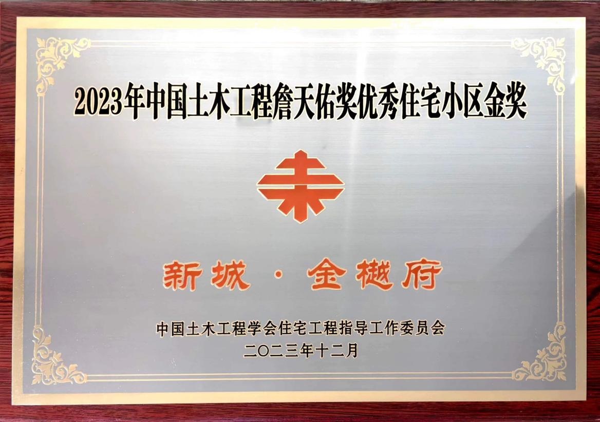 2023年中国土木工程詹天佑奖优秀住宅小区金奖荣誉证书、奖杯