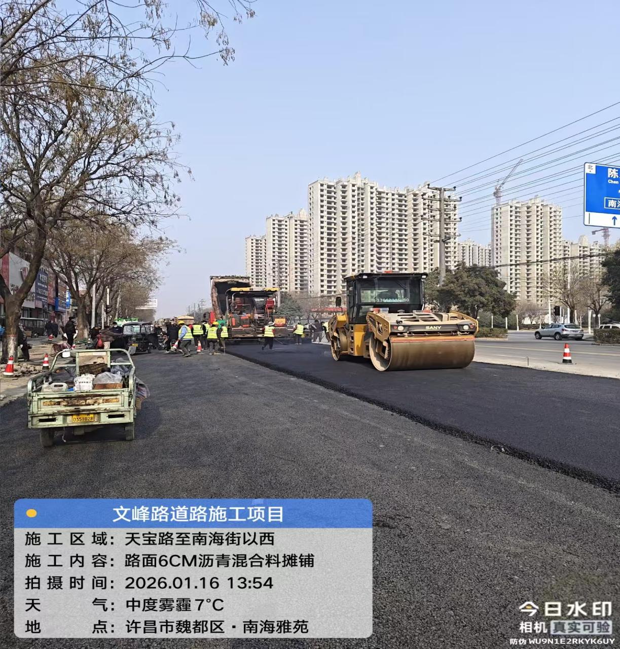 为提升道路通行品质,保障居民通行安全。1月15日起,由集团公司承建的许昌市文峰路(天宝路—永昌路)段地下管网及道路提升改造工程,天宝路-南海街段组织施工力量,对全长670米、宽11米的路段展开沥青碎石和6CM厚AC-20C中粒式沥青混合料集中摊铺作业。